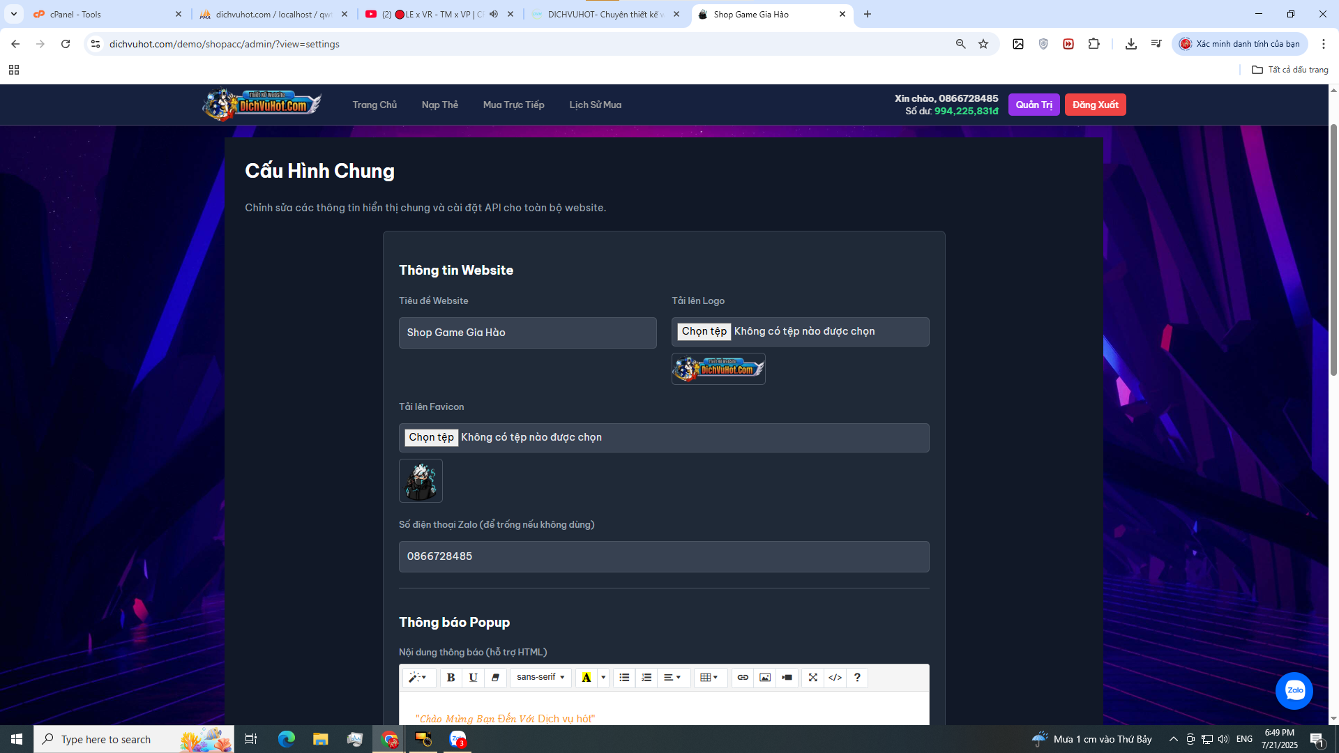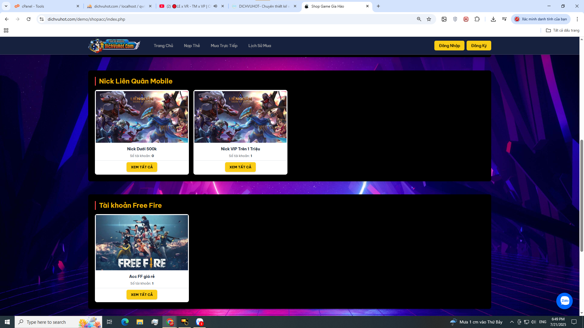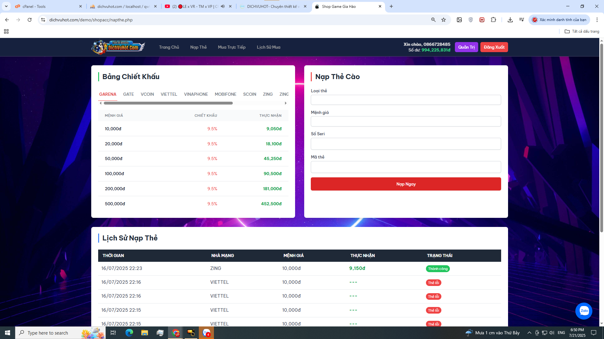 Đầy đủ chức năng, có auto nạp thẻ qua doithe1s.vn